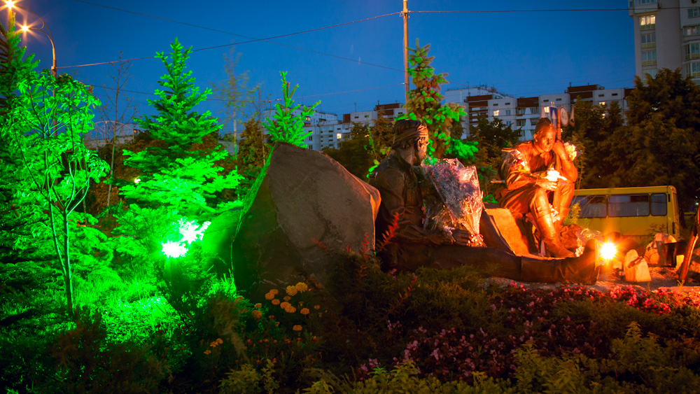 Специально для этого проекта Компания Электронный свет разработала прожектора нового типа, которые создают эффект света от «пылающего огня». Осветительное оборудование работает в темное время суток для освещения скульптур солдат, имитируя свет, идущий от костра.