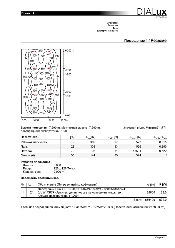 Расчеты выполнены в профессиональной светотехнической программе DIALux.