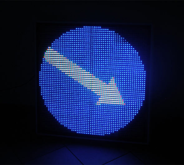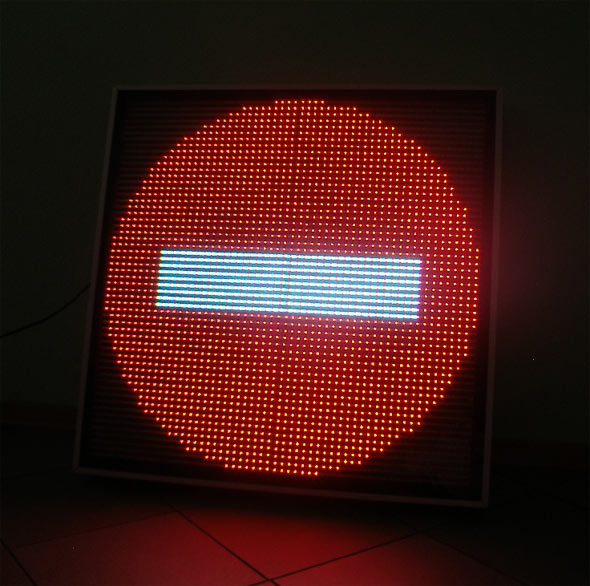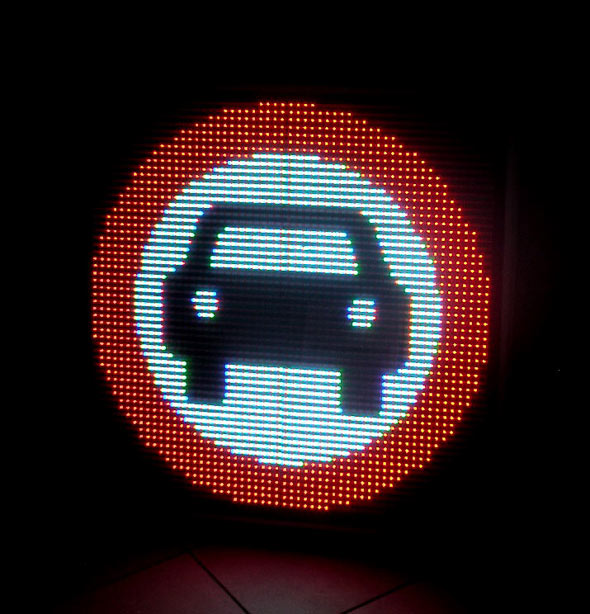 Представленная продукция компании «Электронный свет» – это полноценные светодиодные экраны размером всего 700х700 мм. Можно запрограммировать беспрерывную трансляцию любого дорожного знака на таком экране и включить его в систему управления движением на дорогах.