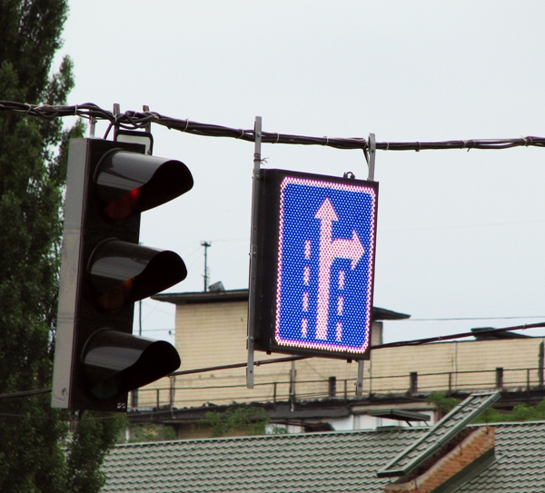 В зависимости от ситуации, знаки указывают стрелками куда должен двигаться транспорт. Из центра управления дорожным движением, при необходимости, происходит контроль и изменение информации.